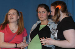 Das Thema unseres diesjährigen Stückes sind vielfältig: die Arbeitslosigkeit und ihre Auswirkungen auf die Familie, der Generationskonflikt und die Geschäftswelt, in der Profit wichtiger ist als menschliche Schicksale. Das wäre natürlich der Stoff für eine Tragödie - wenn wir nicht eine Komödie daraus gemacht hätten! Wie in allen Komödien - im Gegensatz zum wirklichen Leben - geht die Handlung zur Zufriedenheit aller gut aus. Wenn sich alle Probleme nur so leicht lösen ließen. Die Zusammenstellung der "Understudies" ist jedes Jahr unterschiedlich. Das ist immer eine sehr spannende Sache. Dieses Jahr haben wir viele Kursteilnehmerinnen und -teilnehmer aus der Jahrgangsstufe 12 und drei aus der Klasse 10. Zum ersten Mal ist sogar eine amerikanische Austauschschülerin dabei. Erstaunlicherweise gibt es trotz des Altersunterunterschieds keine Konflikte in der Gruppe, die Proben waren wie immer von Harmonie, harter Arbeit und Spaß gekennzeichnet. Mein Wunsch, dass aus der jetzigen Jahrgangsstufe 13 mehr als nur eine Schülerin (s. letztes Jahr) sich melden würde, ging glücklicherweise in Erfüllung. What’s it all about? Hieronymous Slideaway, amerikanischer Geschäftsmann in London, hat zwei Mitarbeiter seiner Firma entlassen: Henry Stilton, der gerade ein Haus gekauft hat und dessen Frau mit ihrem ersten Kind schwanger ist, und Nick Hamper, Junggeselle. Die beiden jungen Männer haben keine Schuld an ihrer Entlassung: Slideaway interessiert nur der Profit; menschliche Schicksale sind ihm völlig egal - es sei denn, es handelt sich um das Schicksal seines einzigen Kindes, seiner Tochter Romance, für die er eine glänzende Zukunft an der Universität Cambridge sieht. Romance erfährt, dass sie im Abitur durchgefallen ist, was sie nicht unbedingt sehr traurig macht, da sie ohnehin wie ihre Mutter, die sich von ihrem Mann getrennt hat, Schauspielerin werden will. In einem Lokal trifft Romance die beiden Entlassenen: Henry ist betrunken und Romance und Nick bringen ihn nach Hause, wo er von seiner Frau, June, nicht gerade freundlich begrüßt wird. Nachdem ein etwas merkwürdiger Gelegenheitsjob sich als Katastrophe erwiesen hat, schlägt Romance den zwei Männern vor, sie sollen Slideaway entführen und in Oma Stiltons Keller einsperren. Dort wolle sie ihn zur Räson bringen. Oma Stilton macht allen einen Strich durch die Rechnung, als sie den Entführten und sein Töchterchen hinauswirft, Mrs. Slideaway holt zwei Privat-detektive ins Haus, Henry bereitet sich darauf vor, das Land zu verlassen - und das Chaos ist beinahe komplett. Es fehlt nur noch, dass Junes und Henrys Baby sich diesen Augenblick aussucht, um das Licht der Welt zu erblicken...